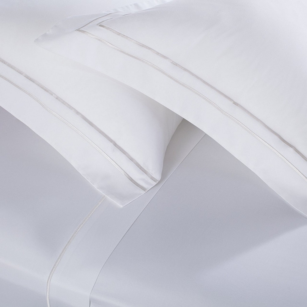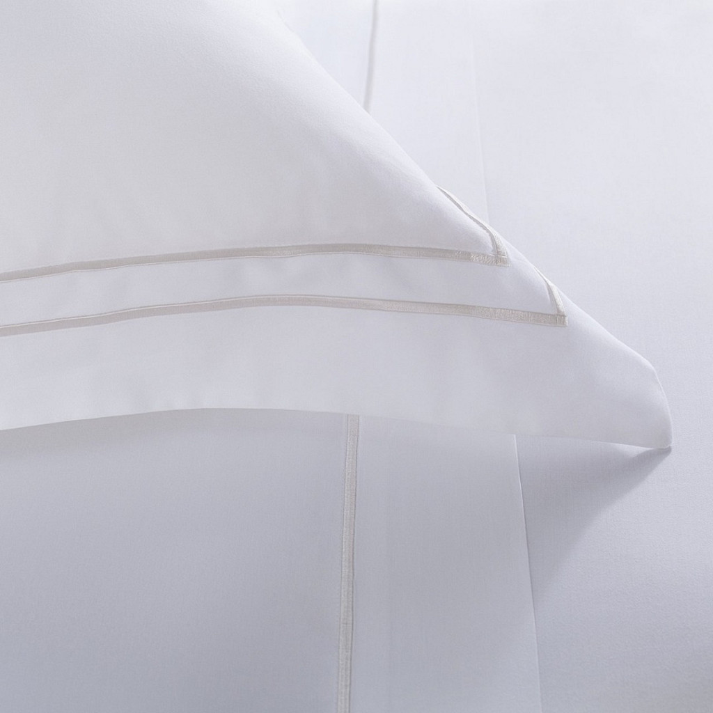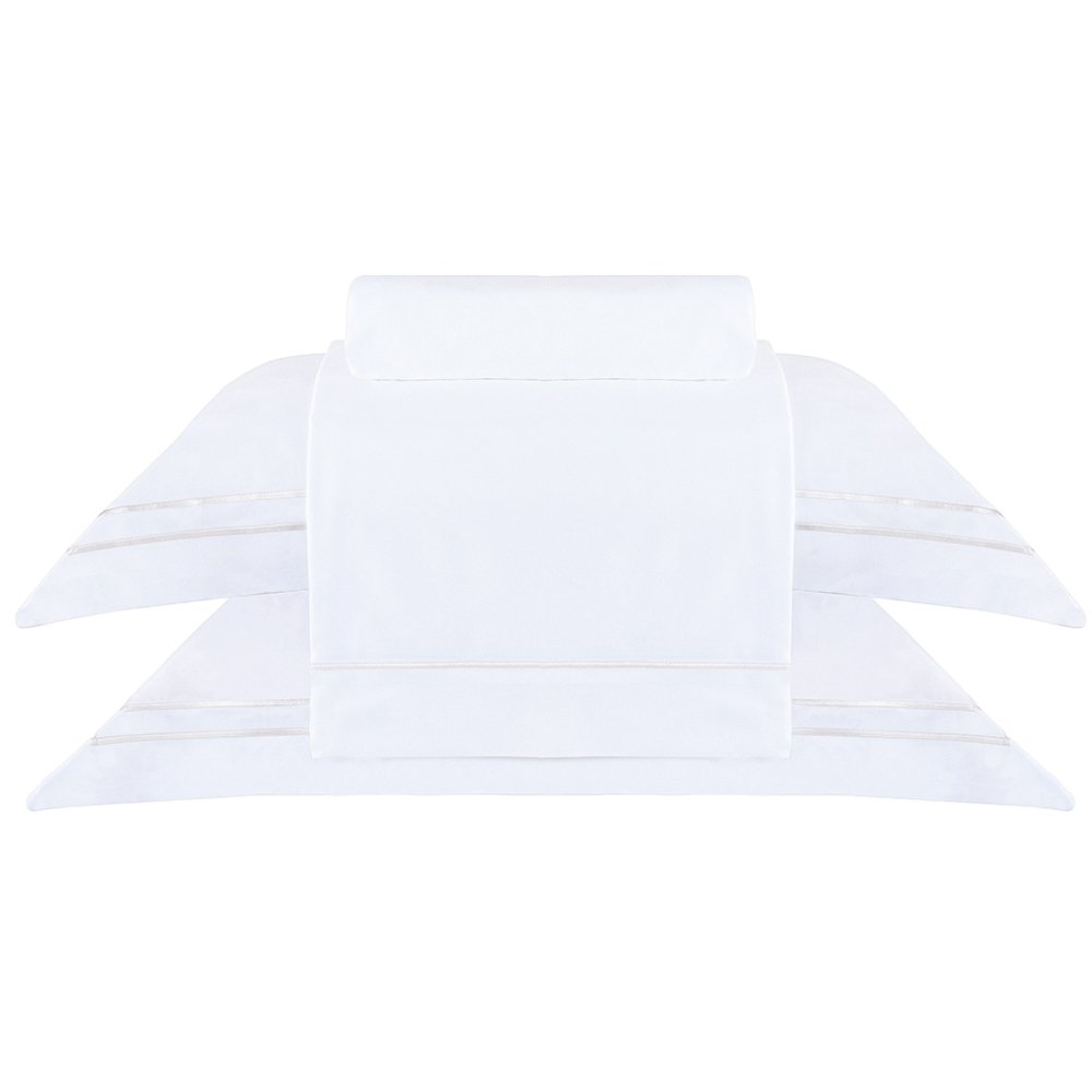 Confeccionado em tecido cetim 300 fios/pol², Fio Penteado, 100% algodão com fibras longas e tecnologia de ponta. Recebe refinado acabamento em ponto cheio na moldura do sobrelençol e fronhas, criando uma combinação inigualável entre elementos da alta-costura com extremo conforto e maciez, para momentos relaxantes e repletos de bem-estar.
