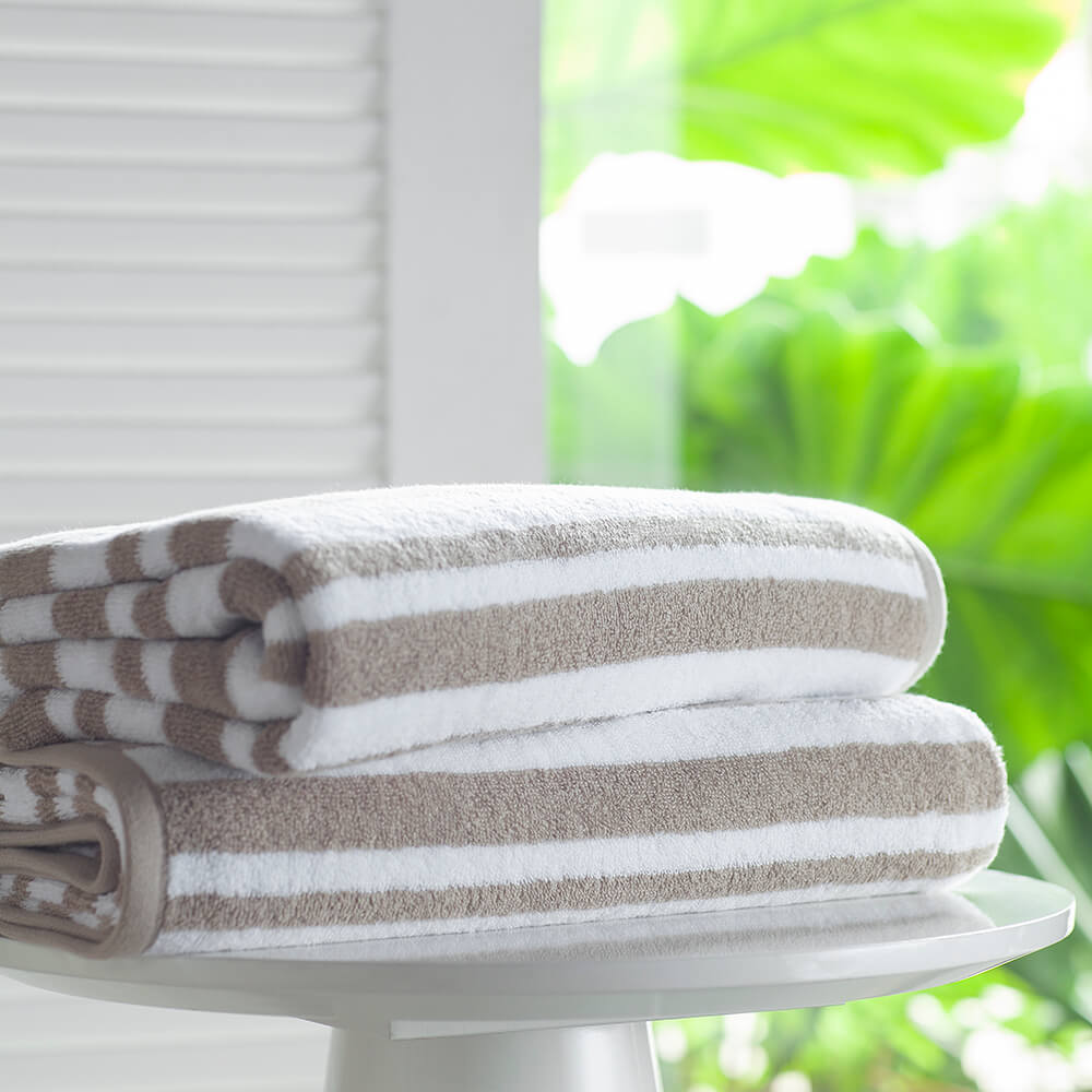 Toalha de Praia/Piscina Angra 100% Algodão Tamanho 77x160cm Branca/Bege